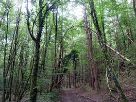 La pista se acaba al lado del cementerio y nos internamos en el bosque.